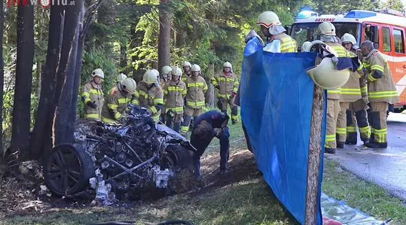 Sbg: Mit Cabrio in Abtenau gegen Baum → Auto brennt, Lenker getötet