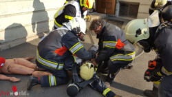 Die Atemschutztrupps der anderen Feuerwehren führten inzwischen eine Personensuche und Rettung im restlichen Gebäude durch. Die Gruppe im 2. Obergeschoß wurde durch die Drehleiter Kapfenberg gerettet. Während die Übung lief, kam es im Technikraum zu einer Verpuffung, wobei hier der Atemschutztrupp des HLF-4 verletzt worden ist. Umgehend wurden alle Rettungsmaßnahmen für die Kameradenrettung getroffen und der Atemschutztrupp durch der Trupps der BTF- Böhler und der FF Kapfenberg – Diemlach gerettet.