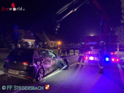 Die Feuerwehren Rauchwart und St. Michael rückten zuerst aus und retten die verunfallte Person aus dem Unfallfahrzeug. Sie übergaben diese an den Rettungsdienst. Die Person wurde unbestimmten Grades verletzt. Die Feuerwehr Stegersbach barg im Anschluss das Unfallfahrzeug mittels Kran und stellte dieses gesichert ab.