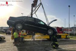 Bei der Lageerkundung wurde eine leichte Rauchentwicklung im Bereich des Motorblocks festgestellt. Obwohl mit der Wärmebildkamera keine hohe Temperatur festgestellt wurde und auch das Aufbringen von Löschwasser zu keinem Nachlassen der Rauchentwicklung führte, wurde ein Abschleppdienst gerufen, der das Fahrzeug anhob.