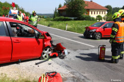 FISCHLHAM (OÖ): Drei Verletzte forderte Freitagvormittag, 14. Juni 2019, ein Frontalcrash zwischen zwei Pkw auf der Sattledter Straße in Fischlham (Bezirk Wels-Land).