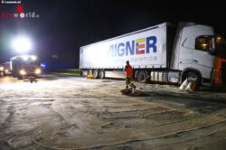 Oö: Langwieriger Einsatz bei massivem Dieselaustritt nach Lkw-Unfall