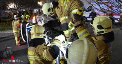 Die Feuerwehr Golling wurde um 09.39 Uhr von einem Passanten über die LAWZ Salzburg alarmiert und rückte sofort mit 6 Fahrzeugen und 40 Mann zur Unfallstelle aus. Bei Ankunft war die verletzte Person im Fahrzeug ansprechbar, jedoch in seinem Fahrzeug eingeschlossen und unbestimmten Grades verletzt.