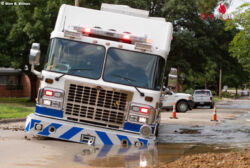 USA: Geborstene Hauptwasserleitung → Feuerwehrfahrzeug verliert Boden unter sich