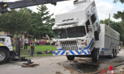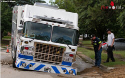 Die Feuerwehrleute schlossen dann die Hauptwasserleitung. Plötzlich begann sich eines der Einsatzfahrzeuge immer weiter abzusenken. Der Boden darunter gab nach. „Ich bemerkte nur, wie sich die Engine immer weiter absenkte. Sonst konnte ich nichts tun“, sagte James McAmis von der Feuerwehr in Fort Worth. Das Fahrzeug musste mit schwerem Gerät aus dem sich geöffneten Erdloch geborgen werden.