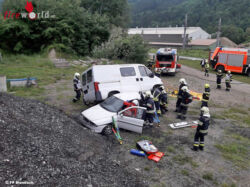KAPFENBERG (STMK): Am 17.06.2019 wurden die FF Kapfenberg-Diemlach, Kapfenberg-Stadt und das Rote Kreuz Kapfenberg laut Alarmplan zu einem Übungs-Verkehrsunfall mit mehreren Fahrzeugen und eingeklemmten Personen zum ehem. Schrottplatz in Diemlach alarmiert.