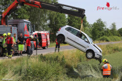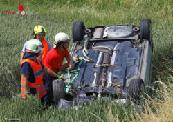Der Unfall ereignete sich im Kreuzungsbereich der Grünbachtalstraße mit der Irnhartinger- beziehungsweise Pennewanger Straße sowie Sirfling im Gemeindegebiet von Gunskirchen. Aus bisher unbekannter Ursache kollidierten in dem Kreuzungsbereich zwei Auto. Eines der Fahrzeuge überschlug sich über die Böschung und kam am Dach liegend in einem Feld zum Stillstand. Ein weiteres Fahrzeug wurde ebenfalls in den Unfall verwickelt. Zwei Personen wurden bei dem Crash verletzt und nach der Erstversorgung durch Rettungsdienst und Notarzt ins Klinikum Wels eingeliefert. Die Feuerwehr sicherte die Unfallstelle ab und unterstützte das örtliche Abschleppunternehmen bei der Bergung der Unfallfahrzeuge.