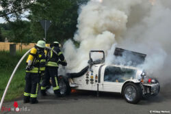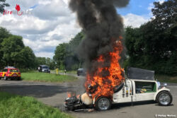 Deutschland: Replikat eines Bugattis bei Alsfeld in Vollbrand