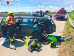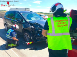 WIENER NEUDORF (NÖ): Zu Mittag des 22. Juni 2019 wurde die Freiwillige Feuerwehr Wiener Neudorf zu einem Verkehrsunfall mit mehreren Verletzten auf die Südautobahn in Fahrtrichtung Graz alarmiert.