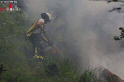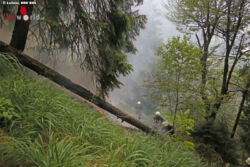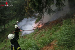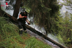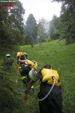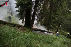 Gegen 13.40 Uhr hat vermutlich ein Blitz im steilen Bergwald am Poschberg im nordwestlichen Lattengebirge in einen Baum eingeschlagen und dabei den Baum, die angrenzende Boden-Vegetation und einen querliegenden Stamm in Brand gesetzt. Fußtrupps der Reichenhaller und Schneizlreuther Feuerwehr stiegen rasch zu Fuß über einen alten Jagersteig und einen steilen Graben auf und konnten mit Rucksackspritzen, Feuerpatschen, Pickeln und einer Motorsäge verhindern, dass ein größerer Waldbrand entsteht.