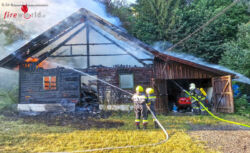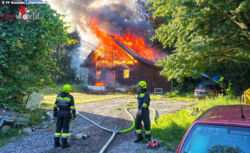 Nö: Vollbrand eines Holzgebäudes direkt in Waldnähe