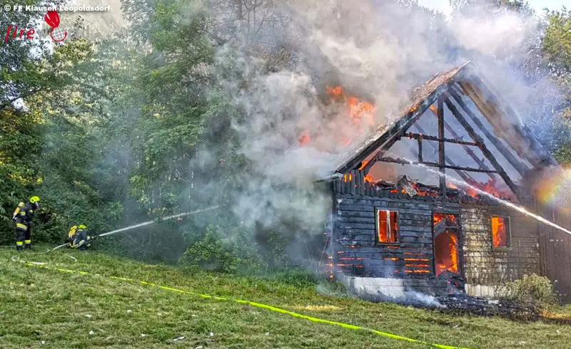 Nö: Vollbrand eines Holzgebäudes direkt in Waldnähe