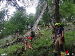 EBENSEE (OÖ): Nach zahlreichen Unwettereinsätzen einige Stunden vorher, wurden die Ebenseer Feuerwehren FF-Ebensee, FF-Rindbach, FF-Langwies und FF-Roith abermals am 1. Juli 2019 zu einen Einsatz gerufen. Ein Blitz setzte einen Baum einige Meter neben einem Wanderweg am Feuerkogel in Brand.