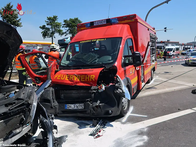 DÜREN (DEUTSCHLAND): Zu einem Verkehrsunfall unklaren Ausmaßes wurde die Feuerwehr der Stadt Düren in den Mittagsstunden des 4. Juli 2019 gerufen. Schon auf der Anfahrt teilte die Leitstelle des Kreises Düren mit, dass ein Einsatzfahrzeug einer Nachbargemeinde in das Unfallgeschehen beteiligt ist und eine unbekannte Anzahl an Personen verletzt wurde.
