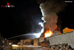 Mit zwei Wenderohren von Drehleitern, drei Wasserwerfern und mehreren B- und C-Rohren wurde der Brand eingedämmt. Dazu wird seit den frühen Morgenstunden der Sperrmüllhaufen mit Baggern abgetragen und das brennende Material abgelöscht. Die Nachlöscharbeiten an der Einsatzstelle dauern derzeit noch an.