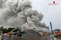 MÜNCHEN (BAYERN): Seit etwa 02.50 Uhr des 8. Juli 2019 beschäftigt die Feuerwehr München ein Großbrand in einem Recyclingbetrieb. Die Löscharbeiten dauern per 15.30 Uhr noch an.