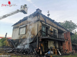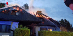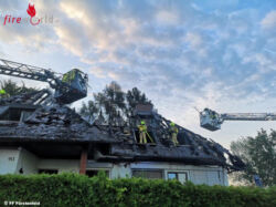 Erschwert wurde die Brandbekämpfung jedoch durch die zum Teil noch intakte Dacheindeckung, die mit einem Feuerhaken entfernt werden musste. Inzwischen war auch das Hubrettungsgerät aus Güssing am Einsatzort eingetroffen und unterstützte die Brandbekämpfung. Zeitgelich nahmen zwei Atemschutztrupps einen Innenangriff im Dachgeschoss vor. Nach rund drei Stunden konnte „Brand aus“ gegeben werden.