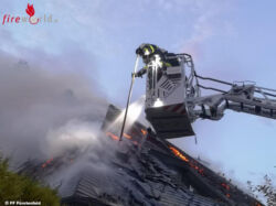 Umgehend besetzte die diensthabende Mannschaft die Drehleiter sowie das Großtanklöschfahrzeug, welches als Wasserreservoir für die Drehleiter dient.