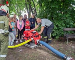 - Bei der Station "Aufbauen einer Saug- und Löschleitung" wurde genau dies gemacht: die Schulkinder bauten gemeinsam mit den Feuerwehrleuten eine Saug- und Löschleitung auf. Es wurde bei einem kleinen Weiher angesaugt und auf die angrenzende Wiese gespritzt.