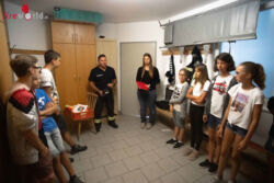 - Die Station "taktische Ventilation" beschäftigte sich damit, wie sich bei einem Brand der Rauch in einem Haus verhält und was mit dem Rauch passiert, wenn man Fenster und Türen öffnet und einen Entlüfter vor die Haustüre stellt. Außerdem wurde den Kindern die Ausrüstung eines Atemschutzträgers gezeigt und wie man mit einer Fluchthaube umgeht.