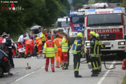 Ein junges Paar aus der Oberpfalz war mit einem VW Golf mit dem entgegenkommenden Suzuki eines jungen Paars aus dem Oman zusammengestoßen, wobei die beiden Omaner nach erster Einschätzung des Roten Kreuzes schwer und die beiden Oberpfälzer leicht verletzt wurden. Der ordnungsgemäß in der Babyschale auf der Rücksitzbank gesicherte einjährige Sohn der Omaner blieb augenscheinlich unverletzt, wurde von den Einsatzkräften aber aufgrund der Aufprall-Geschwindigkeit ebenfalls als mittelschwer verletzt eingestuft. Bei dem Unfall wurde auch der Wohnwagen eines Niederländers aufgeschlitzt; der Fahrer und die Beifahrerin blieben unverletzt, erlitten aber einen Schock und mussten betreut werden.