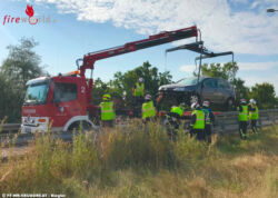 Die Mannschaft der Freiwilligen Feuerwehr Wiener Neudorf barg das Unfallfahrzeug mit dem Ladekran des Abschleppfahrzeuges. Für die Dauer der Bergungsarbeiten musste die Autobahnabfahrt gesperrt werden.