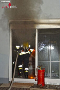 Über die Feuerwehr-Bezirksalarmzentrale Baden wurde die örtlich zuständige Freiwillige Feuerwehr Traiskirchen-Stadt, sowie laut Alarmstufe B2 auch die FF Wienersdorf zu einem Wohnungsbrand alarmiert. Als das erste Fahrzeug der FF Traiskirchen-Stadt am Einsatzort in der Gartensiedlung eintraf sahen die Feuerwehreinsatzkräfte den Bewohner, der zwischenzeitlich anscheinend durch Klopfen des Nachbarn und der Alarmsirene wach wurde, nur mit Pyjama bekleidet auf der Terrasse des Grundstückes stehen. Sofort wurde dieser von den Feuerwehrleuten in Sicherheit gebracht und den ebenfalls eintreffenden Rettungsdienst des Arbeiter-Samariterbundes Traiskirchen übergeben. Zeitgleich lies der Feuerwehreinsatzleiter einen Atemschutztrupp mit einer Löschleitung ins Haus vorgehen.