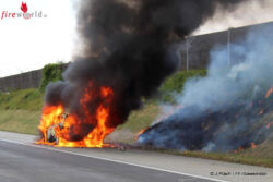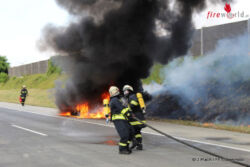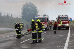 GAWEINSTAL (NÖ): Am Sonntag, den 14.7.2019, wurden wiedermal die Feuerwehren Gaweinstal und Schrick mittels Sirene zu einem Fahrzeugbrand auf die A5 – Nordautobahn Richtungsfahrbahn Brünn gerufen.