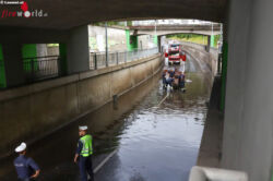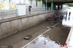 In Wels stand die Feuerwehr bei einer überfluteten Eisenbahnunterführung in der Innbachtal- beziehungsweise Vogelweider Straße im Einsatz.