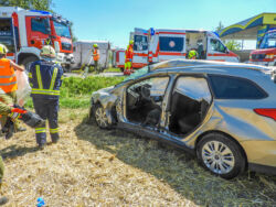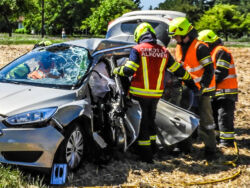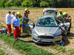 Zu diesem Zeitpunkt wurden sie dann jedoch von zwei zivilen Feuerwehrleuten, die als Ersthelfer aktiv wurden, eingewiesen, dass sich im Feld noch ein weiterer Pkw befindet, in dem ein Mann eingeklemmt sein dürfte.