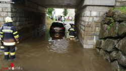 TECHELSBERG (KTN): Unwetter- bzw. Personenrettungsalarm für die Feuerwehr Töschling um 18.26 Uhr des 26. Juli 2019. Beim Eintreffen der Feuerwehr ist ein Pkw mit zwei Personen in der Unterführung gestanden und vom Hochwasser eingeschlossen.