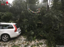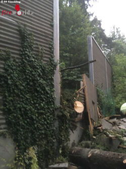 Das Fahrzeug wurde von der Feuerwehr aus dem Gefahrenbereich und das Wasser zum Abfließen gebracht. Weiteres galt es, mehrere umgestürzte Bäume zu entfernen. 23 Mann standen bis 23.00 Uhr im Einsatz.
