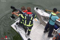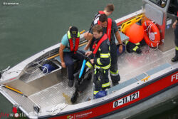 THALHEIM BEI WELS (OÖ): Die Feuerwehr hat Samstagnachmittag, 27. Juli 2019, in Thalheim bei Wels (Bezirk Wels-Land) einen E-Scooter mit dem Feuerwehrboot aus der Traun geborgen.