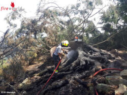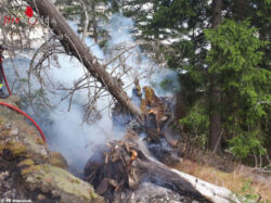 Ein Baum, welcher innen brannte, musste aufgrund der Gefahr für die Mannschaft gefällt werden. Insgesamt musste von den Feuerwehren eine Löschleitung von über 500 Meter gelegt werden. Nach dem Umgraben der Brandstellen mit Schanzwerkzeugen und Nachkontrolle mit der Wärmebildkamera konnte nach über vier Stunden an die Einsatzleitung BRAND AUS gemeldet werden.