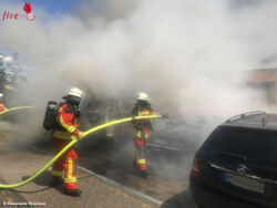 Das Übergreifen den Flammen auf die Garage und weitere danebenstehende Fahrzeuge konnte von der Feuerwehr verhindert werden.