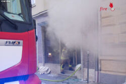 Nachdem aus einem Geschäft – welches sich im Erdgeschoß eines dreistöckigen Mehrparteienhauses gegenüber der Herz-Jesu-Kirche befand, im Bereich der Auslagenscheibe dichter Brandrauch ausbreitete, wurde sofort ein Löschangriff eingeleitet. Dazu wurde eine Auslagenscheibe eingeschlagen und ein C-Rohr unter schwerem Atemschutz in das Geschäftslokal vorgenommen. Parallel wurde das angrenzende Treppenhaus kontrolliert und eine Rauchabzugsöffnung hergestellt. Der Brand konnte rasch unter Kontrolle gebracht werden.