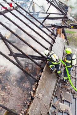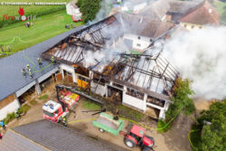 Am Abend ist das landwirtschaftliche Gebäude fast vollständig abgebrannt, berichtet Jakob Gradl von der örtlichen Feuerwehr. Alle Rinder konnten gerettet werden. Das Feuer war laut Nachbarn vermutlich durch einen Blitzschlag ausgelöst worden. Die Einsatzkräfte wurden kurz nach 14.00 Uhr alarmiert. Es brannte der Dachstuhl eines Bauernhofes, in dem Stroh und Heu gelagert wurde. Die Rinder waren durch eine Betondecke vom Brand geschützt. "Wir haben mit einem Lüfter Frischluft in den Stall reingeblasen und dadurch konnten wir die Tiere drinnen lassen", sagte Kommandant-Stellvertreter Gradl.