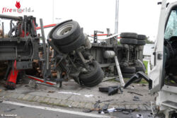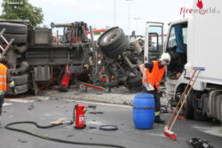 Im Kreuzungsbereich der Wiener- beziehungsweise Linzer Straße mit der Innviertler- und der Pyhrnpass Straße im Welser Stadtteil Pernau kollidierten aus bisher unbekannten Gründen zwei Lkw. Ein Holztransporter ist nach der Kollision umgestürzt. Die beiden Lenker wurden bei dem Unfall verletzt. Die Holzladung stürzte in den Kreuzungsbereich die Einsatzkräfte haben den Bereich bei einer ersten Suche abgesucht. Im Anschluss wurde die Ladung mit einem Kran geborgen, um definitiv ausschließen zu können, dass Fußgänger oder Passanten unter der umgestürzten Ladung sind.