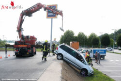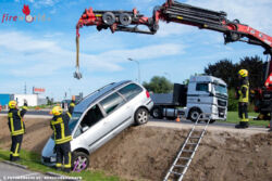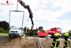 Die Insassen blieben dabei unverletzt und konnten das Fahrzeug selbständig verlassen. Das Fahrzeug wurde mithilfe eines Krans der Feuerwehr Mauthausen geborgen.