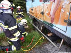 Stmk: Klein-Lkw mit Hebekissen aus Wasserrinne geborgen