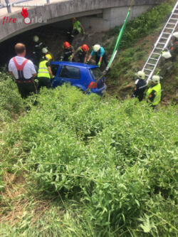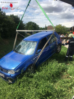 In Großriedenthal eingetroffen fand man einen PKW unter einer Brücke vor. Dieser wurde mit dem Kran des Wechselladefahrzueges geborgen und einem gewerblichen Abschleppdienst übergeben.