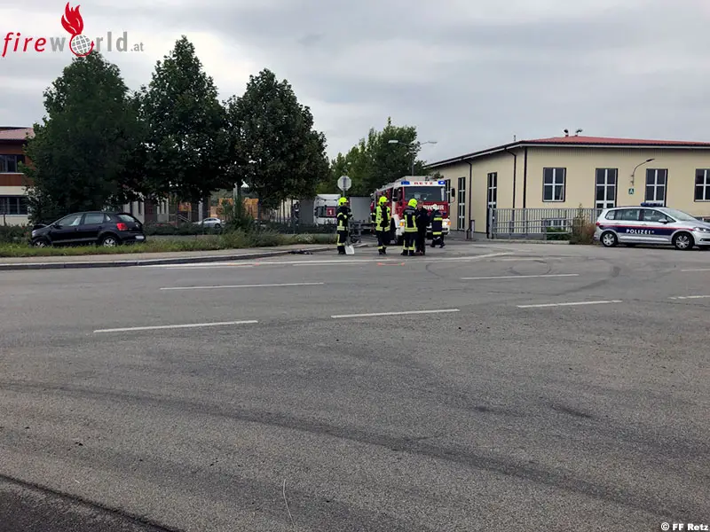 RETZ (NÖ): Die Freiwillige Feuerwehr Retz wurde am 2. September 2019, um 11.52 Uhr, von Florian Niederösterreich zu einem technischen Einsatz in Retz alarmiert. An der Ortseinfahrt von Retz stießen zwei Fahrzeuge an einer Kreuzung zusammen.