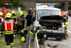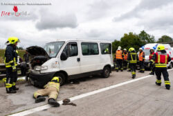 ST. VALENTIN (NÖ): Zu einem Verkehrsunfall zwischen einem Lkw und einem Kleinbus kam es Samstagnachmittag, 7. September 2019, auf der Westautobahn (A1) im Gemeindegebiet von Sankt Valentin (Bezirk Amstetten).
