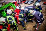 Unter besonders realistischen Bedingungen in der Schottergrube (Gemeinde Burgkirchen) der Firma Lindlbauer mussten die Helfer folgende, äußerst fordernde Szenen, unter strenger Aufsicht von geschulten Beobachtern aller anwesenden Einsatzorganisationen abarbeiten: