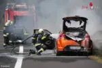 Ein Pkw ist Dienstagmittag während der Fahrt auf der Innkreisautobahn unmittelbar nach dem Knoten Wels in Fahrtrichtung Passau in Flammen aufgegangen. Im Bereich des Motorraumes kam es zu einer Rauchentwicklung, der Lenker konnte das Fahrzeug noch auf den Pannenstreifen lenken, ehe es zu brennen begann. Trotz Löschversuche durch die Traffic Manager der ASFINAG und der kurz darauf eintreffenden Feuerwehr, stand das Fahrzeug kurzzeitig nahezu in Vollbrand. Verletzt wurde zum Glück niemand.