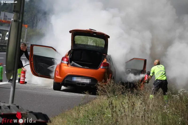 Ein Pkw ist Dienstagmittag während der Fahrt auf der Innkreisautobahn unmittelbar nach dem Knoten Wels in Fahrtrichtung Passau in Flammen aufgegangen. Im Bereich des Motorraumes kam es zu einer Rauchentwicklung, der Lenker konnte das Fahrzeug noch auf den Pannenstreifen lenken, ehe es zu brennen begann. Trotz Löschversuche durch die Traffic Manager der ASFINAG und der kurz darauf eintreffenden Feuerwehr, stand das Fahrzeug kurzzeitig nahezu in Vollbrand. Verletzt wurde zum Glück niemand.