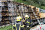 Auf einem Richtung Salzburg fahrenden Lkw geriet die aus mehreren hundert Strohballen bestehende Ladung in Brand. Dem Lenker gelang es noch, den Notruf absetzen und anschließend das Fahrzeug am Pannenstreifen abstellen.