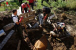 Alarmiert wurde zusätzlich die Berufsfeuerwehr Graz mit einem Kranfahrzeug. Ein Heben des trächtigen Tieres war jedoch aufgrund der Einsinktiefe nicht möglich. Mittels am Kran montierten Greifer wurde die Umrandung des Misthaufens entfernt. Anschließend konnte durch einen Traktor mit Frontlader ein Weg zur Kuh gegraben werden. Durch das Freigraben mit dem Frontlader rutschte die Kuh gemeinsam mit dem Mist immer weiter nach vorne, sodass sie letztlich händisch ausgegraben und schlussendlich mit Stricken aus dem Mist gezogen werden konnte.