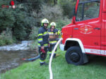 Über die Vorbaupumpe des Löschfahrzeuges der FF Leoben-Stadt erfolgte die Wasserentnahme aus dem großen Gößbach und mittels Zubringleitung die Versorgung des HLF4 der FF Leoben-Göß. Von diesem Fahrzeug aus wurde ein Außen-Löschangriff mit zwei C-Rohren erfolgreich durchgeführt.