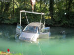 Beim Eintreffen der Helfer am Einsatzort befand sich ein Auto am gegenüberliegenden Ufer im Lendkanal. Die Passagiere wurden bereits von Passanten befreit und dem Rettungsdienst übergeben. Es war kein Austritt von Betriebsmitteln festzustellen. So wurde das Auto von zwei Tauchern gesichert, angeschlagen und per Bergekran aus dem Gewässer geholt sowie auf der Fahrbahn abgestellt.